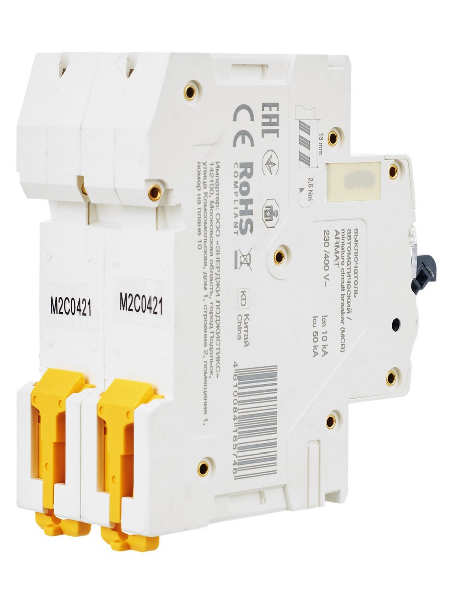 Автоматический выключатель IEK ARMAT M10N 2P C 4А (артикул AR-M10N-2-C004) обеспечивает надежную защиту электрических цепей от перегрузки и короткого замыкания.