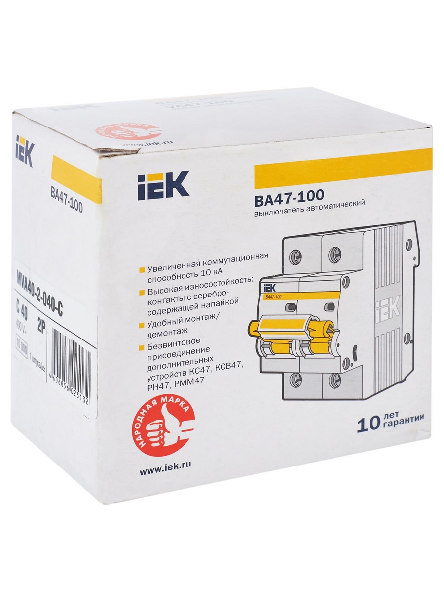 Автоматический выключатель IEK KARAT ВА 47-100 2Р 40А 10 кА х-ка С MVA40-2-040-C по цене 1 679 руб. с фотографией и техническими характеристиками. Для покупки товара нажмите кнопку "Купить" и перейдите в корзину или позвоните по телефону 8 (495) 585 32 60 или 8 (800) 222 23 53.
