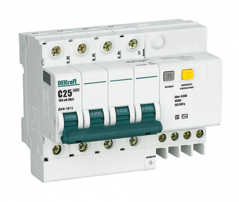 Дифференциальный автомат DEKraft АВДТ 4P 25A 100мА селективный ДИФ-101 S 15310DEK по цене 3 373 руб. с фотографией и техническими характеристиками. Для покупки товара нажмите кнопку "Купить" и перейдите в корзину или позвоните по телефону 8 (495) 585 32 60 или 8 (800) 222 23 53.