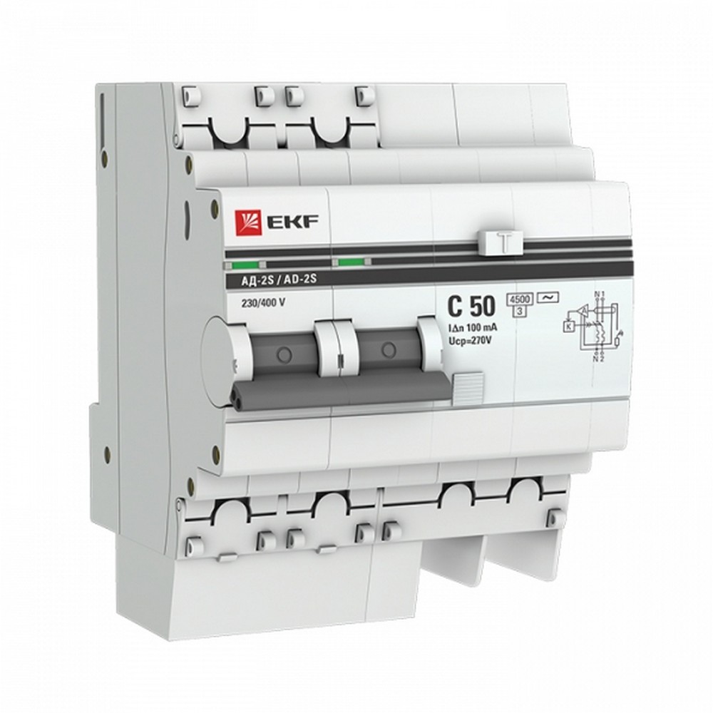 **Дифференциальный автомат EKF PROxima АД-2 (C) 50А /100мА тип АС 4,5кА (артикул: DA2-50-100S-pro)** – это надежное решение для защиты электрических сетей.