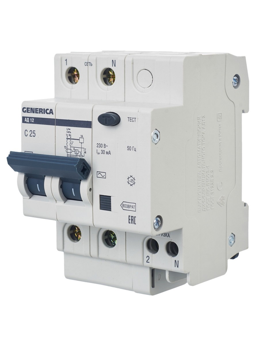 Дифференциальный автоматический выключатель IEK GENERICA АД12 2Р 25A 30мА MAD15-2-025-C-030 по цене 557 руб. с фотографией и техническими характеристиками. Для покупки товара нажмите кнопку "Купить" и перейдите в корзину или позвоните по телефону 8 (495) 585 32 60 или 8 (800) 222 23 53.