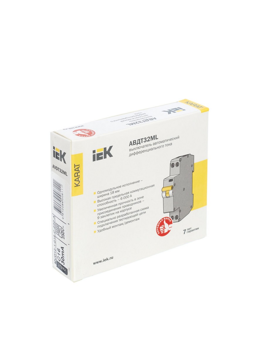 С компактным размером (18 мм в одном модуле) этот выключатель легко устанавливается в стандартные щиты. Подходит для использования в жилых и коммерческих помещениях, особенно в местах с повышенным риском, таких как ванные комнаты и кухни. Выбор IEK KARAT – это ваш шаг к безопасности и надежности электрооборудования.