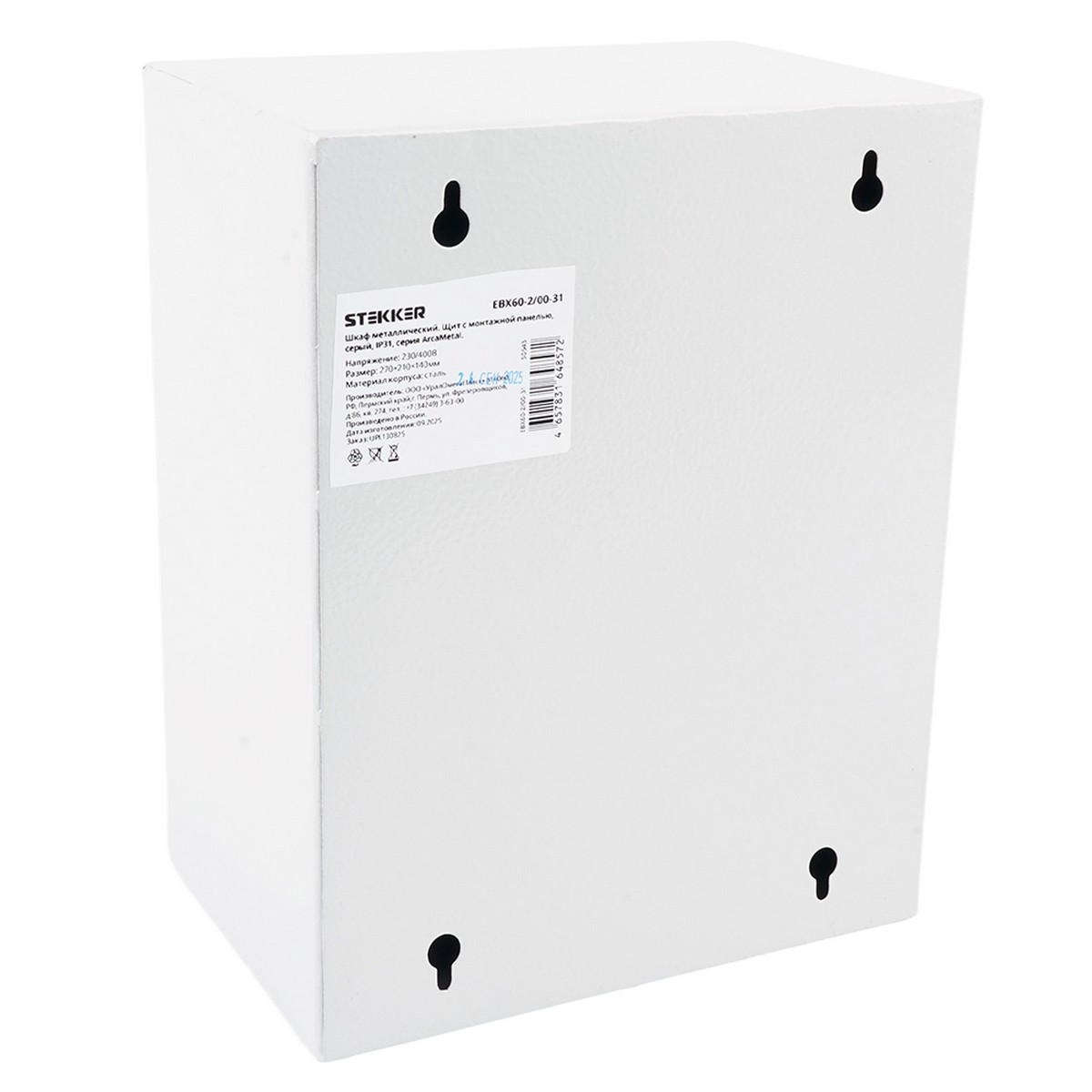 Шкаф с монтажной панелью ЩМП-00 STEKKER EBX60-2/00-31 IP31 (270*210*140) сталь ArcaMetal 50543 по цене 1 821 руб. с фотографией и техническими характеристиками. Для покупки товара нажмите кнопку "Купить" и перейдите в корзину или позвоните по телефону 8 (495) 585 32 60 или 8 (800) 222 23 53.
