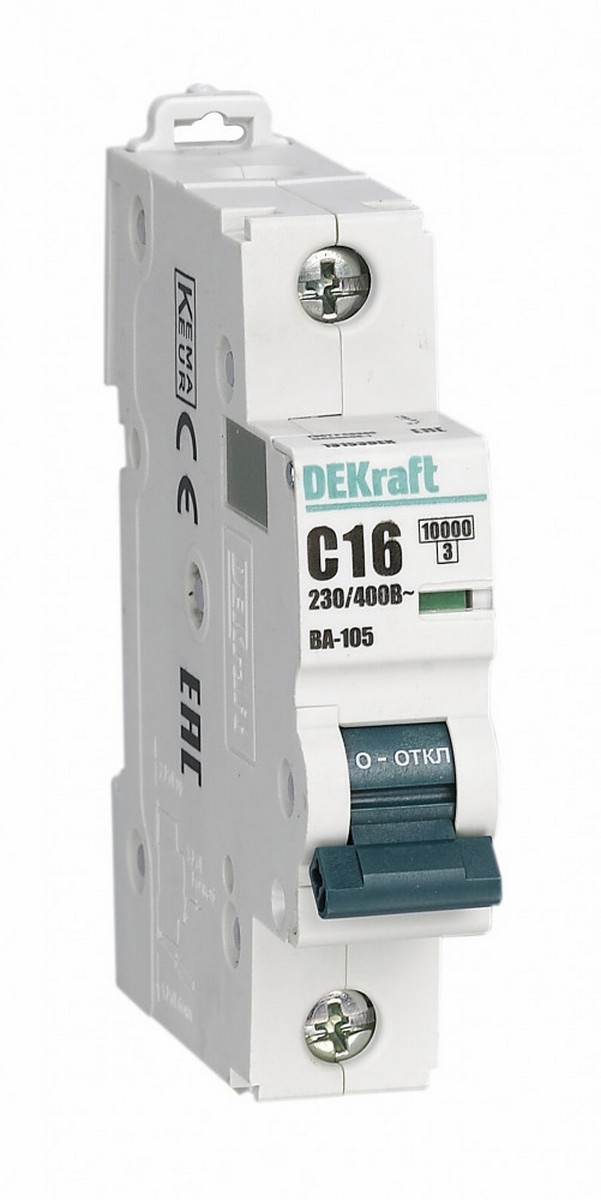 Автоматический выключатель серии ВА-105 DEKraft; 1P; ном. ток 16 А; характеристика D; откл. способность 10 кА; ширина модуля 18мм. Аппараты имеют механизм мгновенной коммутации, 6 монолитных заклепок, которые повышают прочность корпуса. Боковые каналы охлаждения повышают стабильность работы при высоких температурах окружающей среды. Есть возможность установки дополнительных аксессуаров с левой стороны устройства. Аппарат на 100% совместим с корпусами и оболочками DEKraft и Systeme Electric.