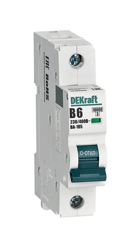 Автоматический выключатель серии ВА-105 DEKraft; 1P; ном. ток 6 А; характеристика D; откл. способность 10 кА; ширина модуля 18мм. Аппараты имеют механизм мгновенной коммутации, 6 монолитных заклепок, которые повышают прочность корпуса. Боковые каналы охлаждения повышают стабильность работы при высоких температурах окружающей среды. Есть возможность установки дополнительных аксессуаров с левой стороны устройства. Аппарат на 100% совместим с корпусами и оболочками DEKraft и Systeme Electric.
