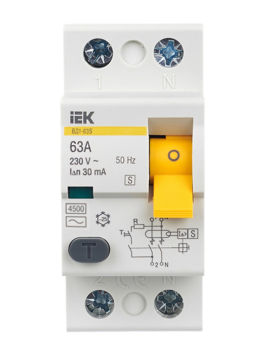 **Выключатель дифференциальный IEK KARAT ВД1-63 (УЗО) 2Р 63А 30мА**