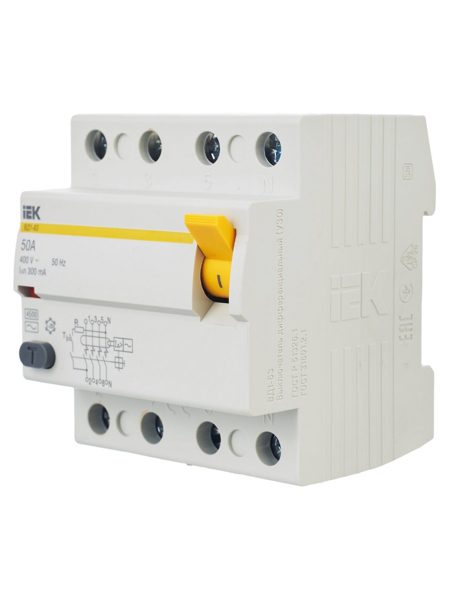 Выключатель дифференциальный IEK KARAT ВД1-63 (УЗО) 4Р 50А 300мА MDV10-4-050-300 по цене 2 739 руб. с фотографией и техническими характеристиками. Для покупки товара нажмите кнопку "Купить" и перейдите в корзину или позвоните по телефону 8 (495) 585 32 60 или 8 (800) 222 23 53.
