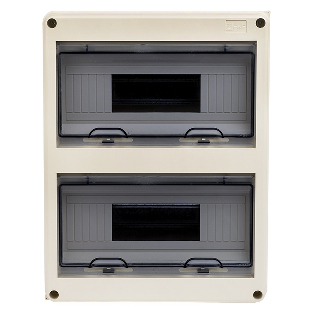 **Щит распределительный EKF PROxima ЩРН-ПГ-24** (артикул: pb65-n-pg-24) – надежное решение для распределения электроэнергии. Изготовленный из прочного ABS-пластика, он обеспечивает защиту от токов перегрузки и короткого замыкания. Высокая степень защиты IP65 позволяет использовать щит в помещениях с повышенной влажностью и запыленностью, таких как гаражи, производственные зоны и склады. Вертикальное открывание дверцы упрощает установку в ограниченных пространствах. Подходит для монтажа модульного оборудования.