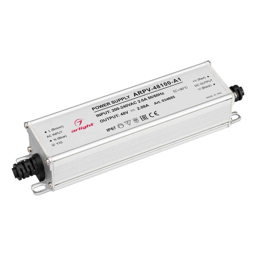 Блок питания Arlight ARPV-LV48100-A (48V, 2.1A, 100W) предназначен для надежного питания светодиодных изделий. Обеспечивает входное напряжение 100-240 VAC и выходные параметры 48 В при токе 2,1 А, с мощностью 100 Вт. Встроенный PFC более 0,5 обеспечивает высокую эффективность. Герметичный корпус с защитой IP67 гарантирует защиту от влаги и пыли, что позволяет использовать устройство в сложных условиях при температуре от -30 до +70°C. Компактные размеры (190x52x37 мм) и трехлетняя гарантия делают этот блок питания идеальным решением для профессионального использования.