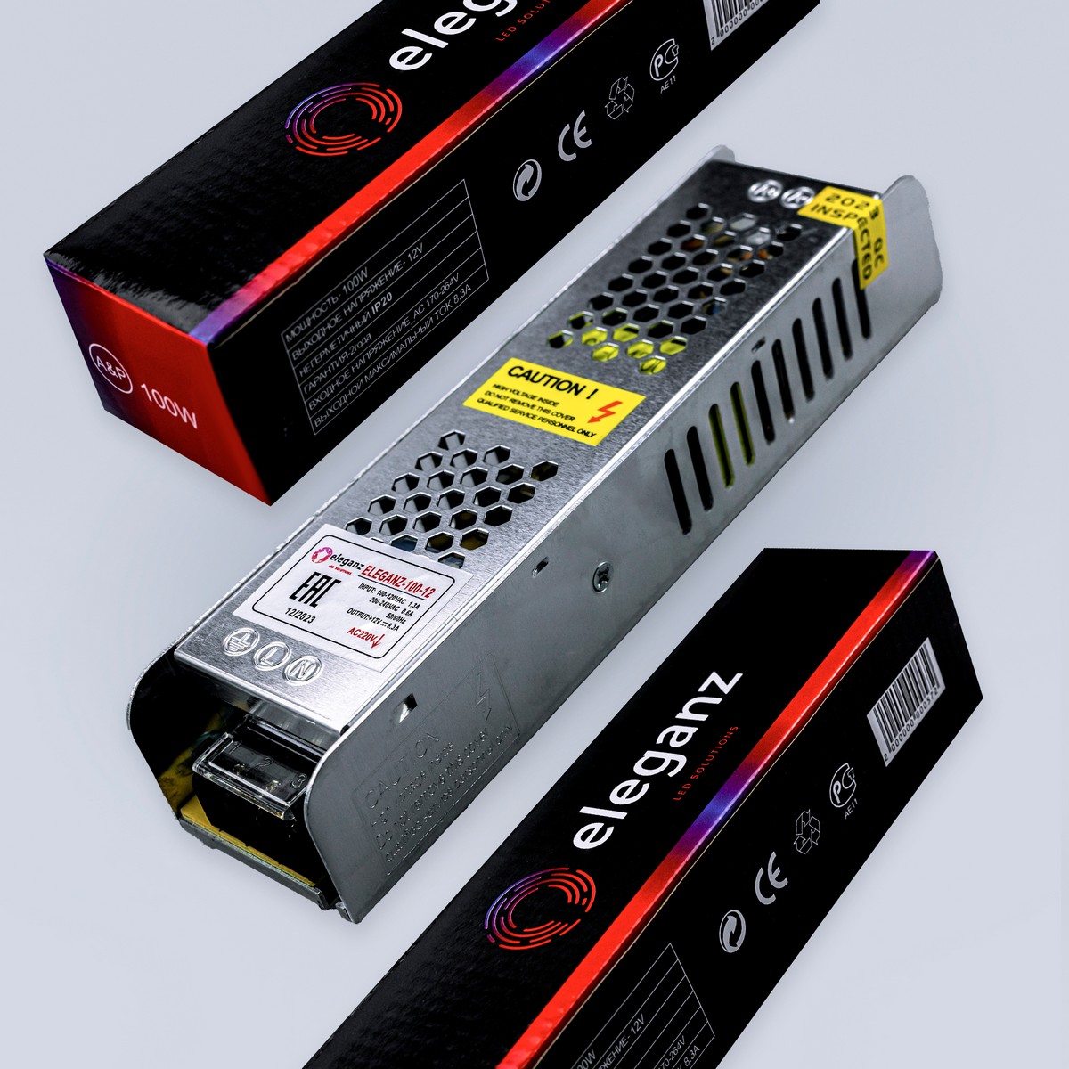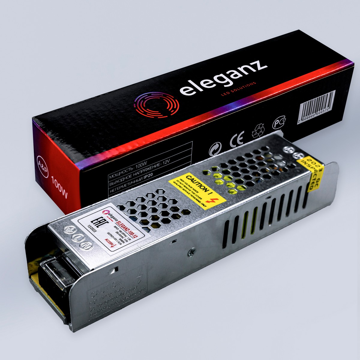 Блок питания Eleganz 12V 100W IP20 предназначен для преобразования переменного тока 220В в постоянный 12В, обеспечивая стабильную работу светодиодных лент и других устройств. Рекомендуется учитывать запас мощности +20% для надежной эксплуатации. Степень защиты IP20 подходит для использования в помещениях.