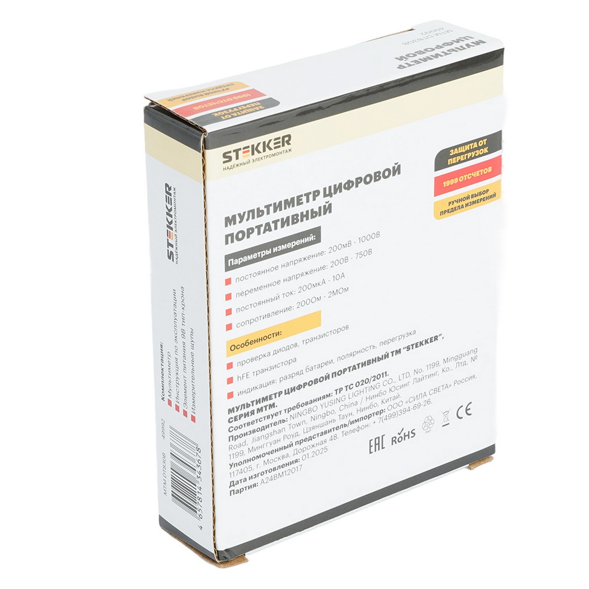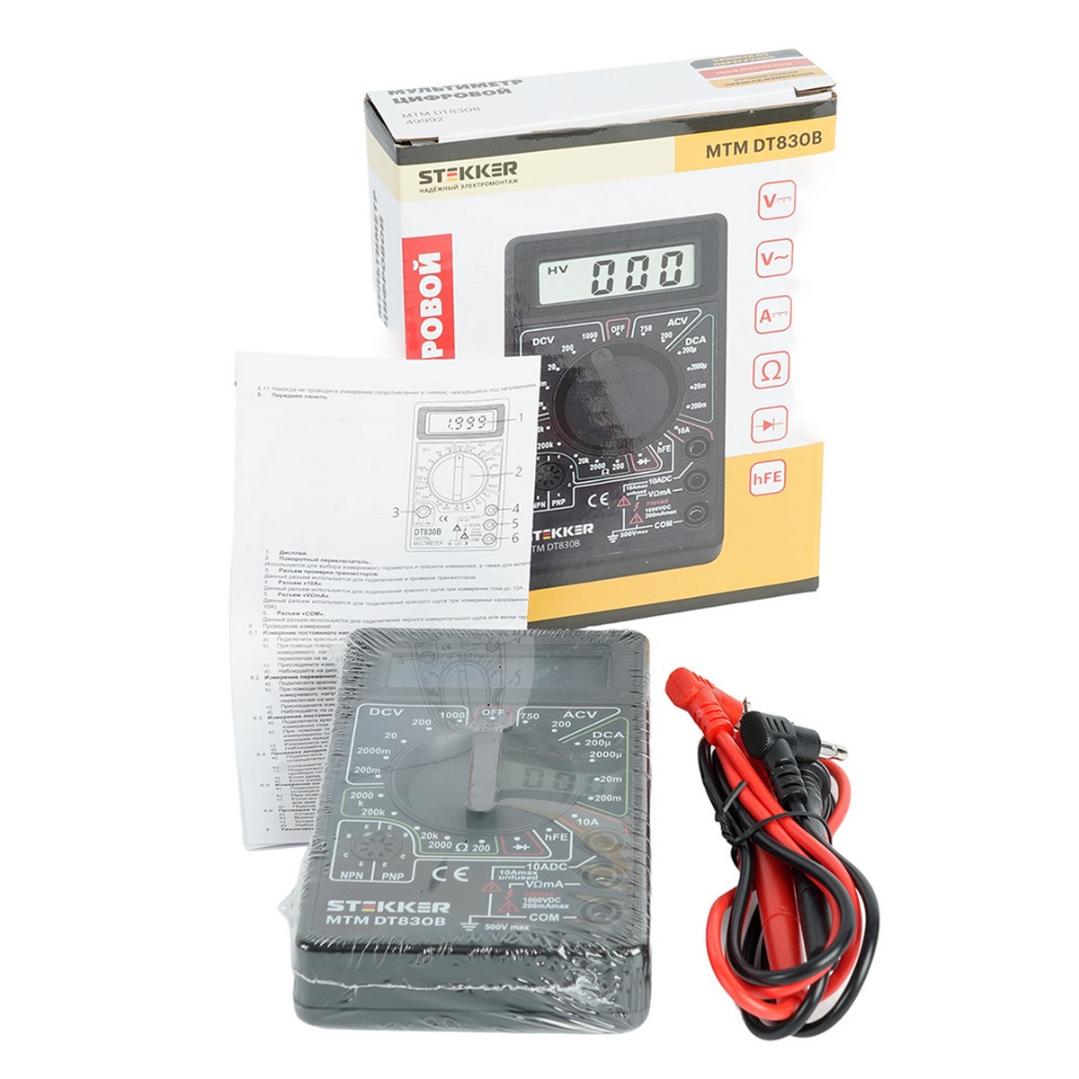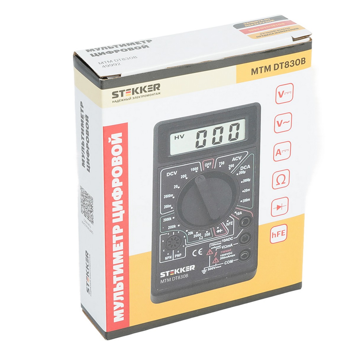 Мультиметр STEKKER MTM DT830B цифровой 49992 по цене 392 руб. с фотографией и техническими характеристиками. Для покупки товара нажмите кнопку "Купить" и перейдите в корзину или позвоните по телефону 8 (495) 585 32 60 или 8 (800) 222 23 53.