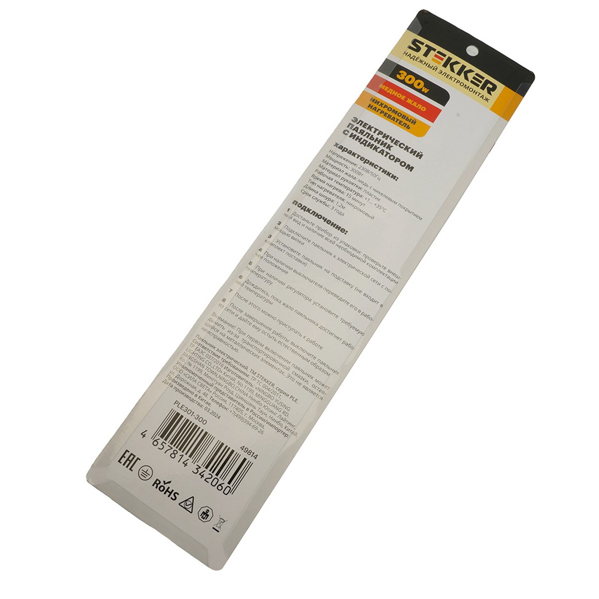 Паяльник с индикатором 300W STEKKER PLE301-300 49814 по цене 1 563 руб. с фотографией и техническими характеристиками. Для покупки товара нажмите кнопку "Купить" и перейдите в корзину или позвоните по телефону 8 (495) 585 32 60 или 8 (800) 222 23 53.