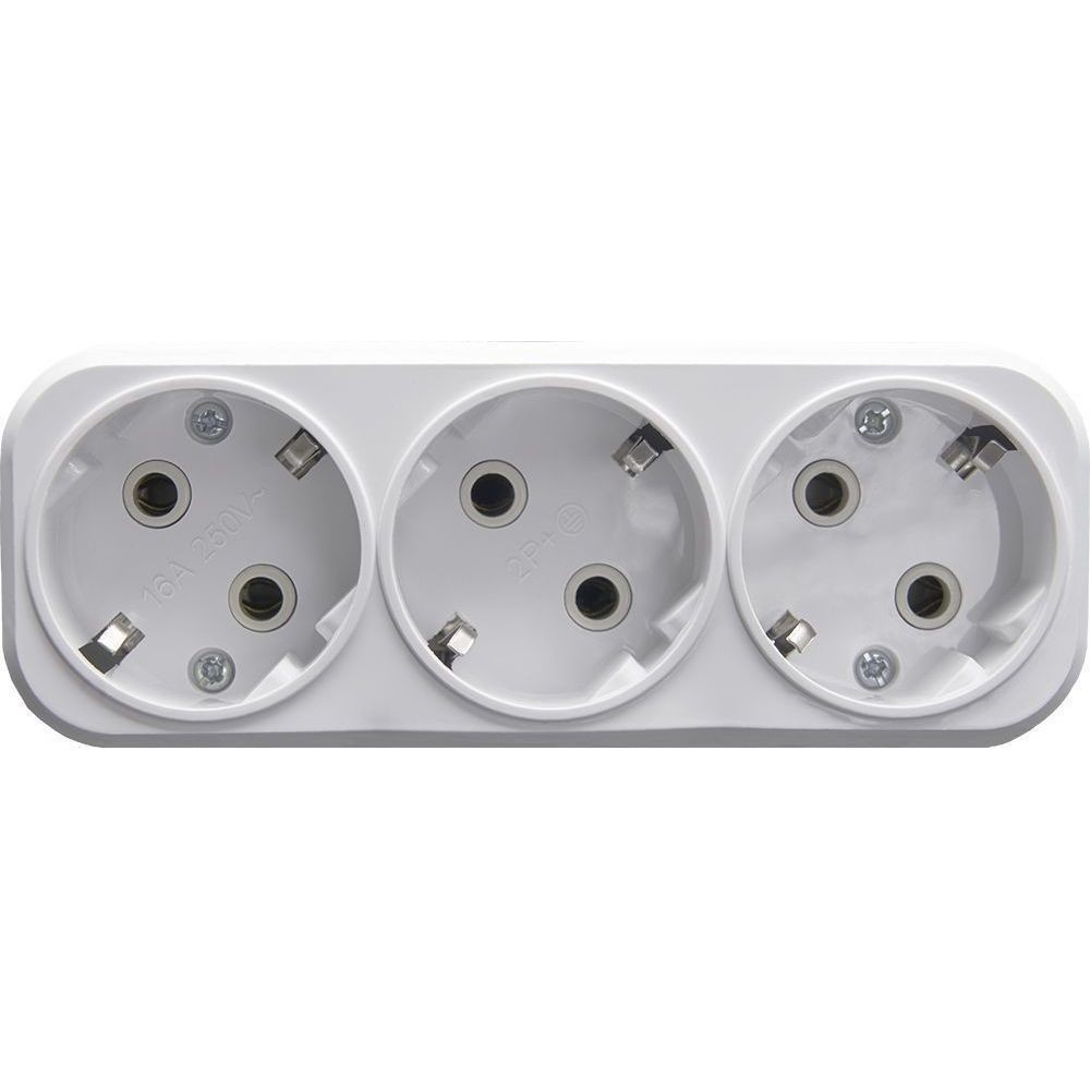 Сетевой разветвитель STEKKER ADP16-23-20 (ADP16-23-20) с заземлением, количество присоединяемых устройств 3, номинальное напряжение 250В, номинальный ток 16А, материал ABS пластик, латунь, нержавеющая сталь, цвет белый, IP20