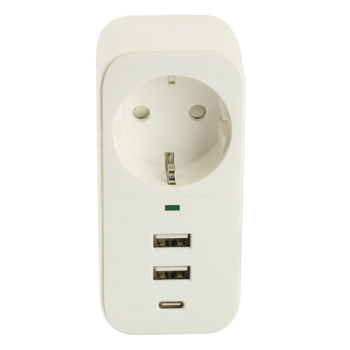 HM81-11-1 Сетевой фильтр 1-местный с/з, 250В, 16А, 2USB+1Type-C 2,4 A, серия Nova, белый