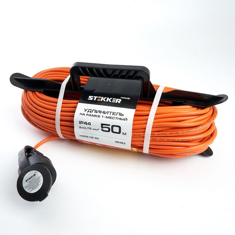 Удлинители STEKKER HM02-01-50, серия Home, цвет оранжевый, длина 50 м, количество розеток 1, сталь, сечение кабеля 0.75 мм2, тип кабеля ПВС, материал кабеля медь, ток 10А, напряжение 220В, максимальная нагрузка 2200Вт, тип вилки - прямая. Диапазон рабочих температур  +1..+35°C, степень защиты IP44, класс защиты от поражения эл. током 1, размеры изделия 450*190*145. Гарантия 1 год.