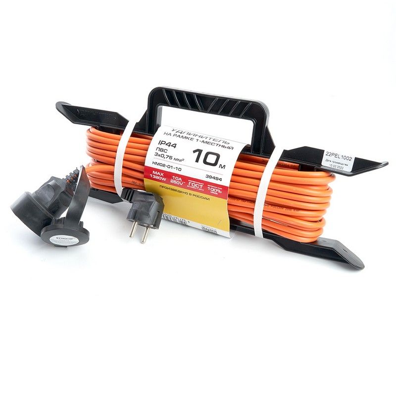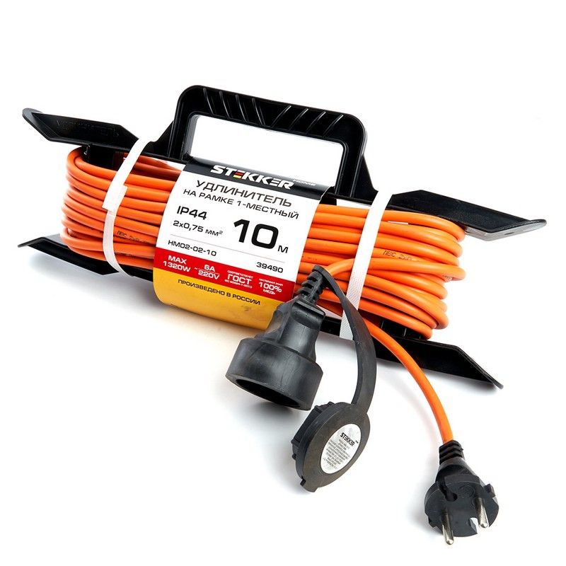 Удлинители STEKKER HM02-02-10, серия Home, цвет оранжевый, длина 10 м, количество розеток 1, сталь, сечение кабеля 0.75 мм2, тип кабеля ПВС, материал кабеля медь, ток 6А, напряжение 220В, максимальная нагрузка 1320Вт, тип вилки - прямая. Диапазон рабочих температур  +1..+35°C, степень защиты IP44, класс защиты от поражения эл. током 2, размеры изделия 398*165*155. Гарантия 1 год.