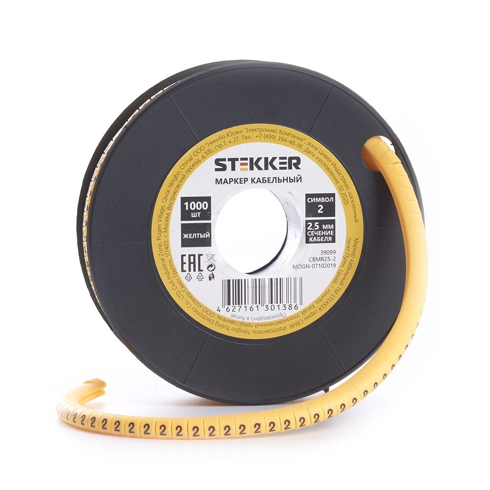 Кабель маркер на бобине электромонтажный STEKKER CBMR25-2, , желтый, материал - ПВХ, размер 98*98мм, максимальный диаметр пучка - мм, нагрузка - кг, диапазон рабочих температур -10°C - +40°C, рекомендуемая температура хранениня