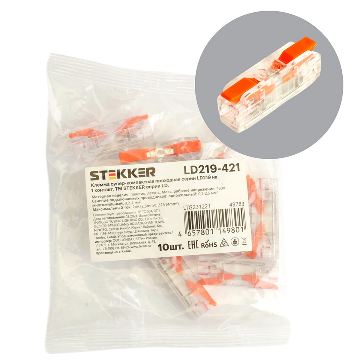 Клемма STEKKER LD219-421 супер-компактная проходная на 1 контакт (DIY упак 10 шт) 49783 по цене 155 руб. с фотографией и техническими характеристиками. Для покупки товара нажмите кнопку "Купить" и перейдите в корзину или позвоните по телефону 8 (495) 585 32 60 или 8 (800) 222 23 53.