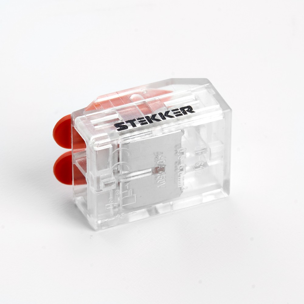 Клемма пружинная универсальная компактная STEKKER LD221-612 , 2-проводная 0,5-6 мм2, 450В, 41А, без пасты, материал изделия пластик, медь. Тип провода одножильный/многожильный, материал провода медь, температура окружающей среды -20...+40°C