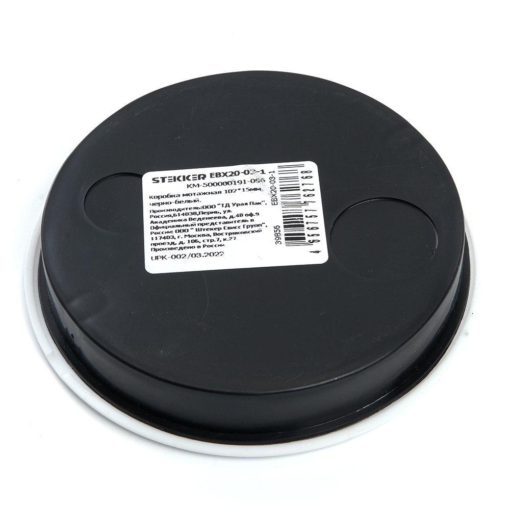 Коробка монтажная STEKKER EBX20-03-1, количество вводов: 2, полипропилен, цвет черно-белый, размер 102*102*15мм.