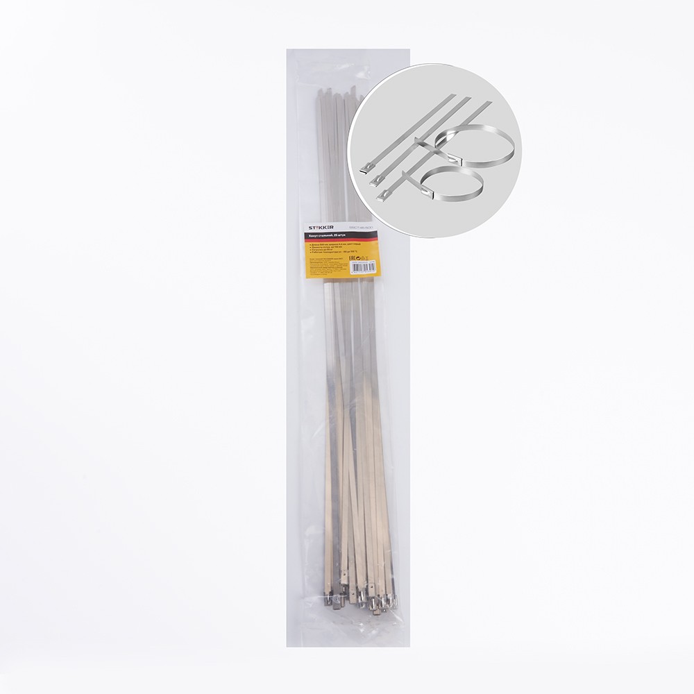 Хомут электромонтажный STEKKER SSCT46-500, одноразовый, серый, материал - сталь, максимальный диаметр пучка - 146мм, нагрузка - 55кг, диапазон рабочих температур -80..+538°C, рекомендуемая температура хранениня -