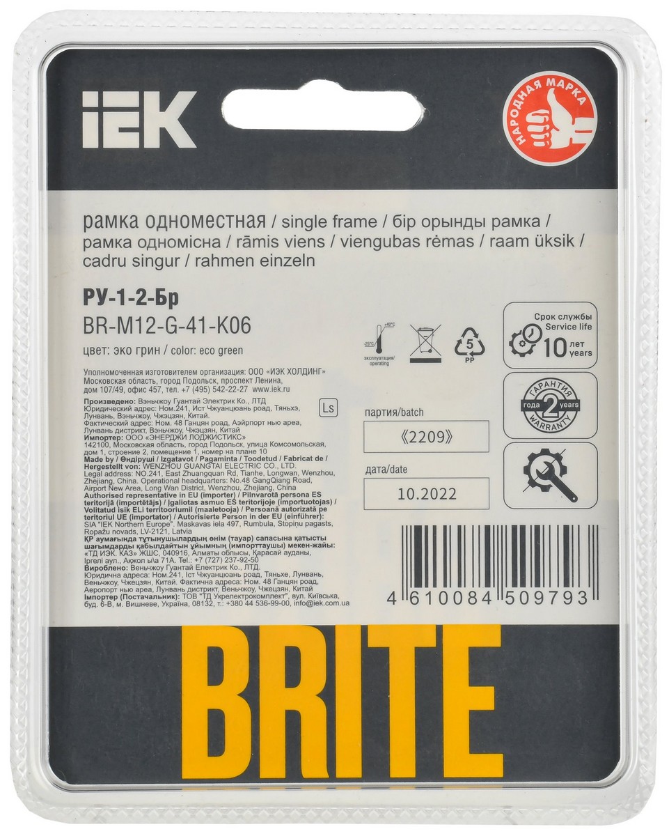 Рамка IEK BRITE DECOR Эко грин матовый стекло скругл.угол 1-мест. РУ-1-2-Бр RE BR-M12-G-41-K06 по цене 833 руб. с фотографией и техническими характеристиками. Для покупки товара нажмите кнопку "Купить" и перейдите в корзину или позвоните по телефону 8 (495) 585 32 60 или 8 (800) 222 23 53.