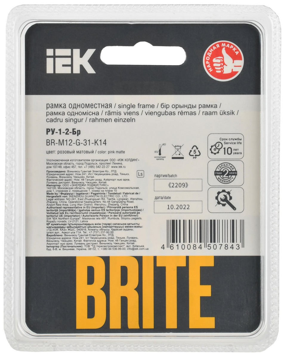 Рамка IEK BRITE DECOR Розовый матовый стекло 1-мест. РУ-1-2-Бр BR-M12-G-31-K14 по цене 714 руб. с фотографией и техническими характеристиками. Для покупки товара нажмите кнопку "Купить" и перейдите в корзину или позвоните по телефону 8 (495) 585 32 60 или 8 (800) 222 23 53.