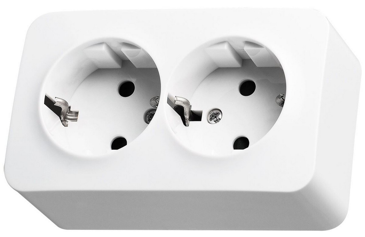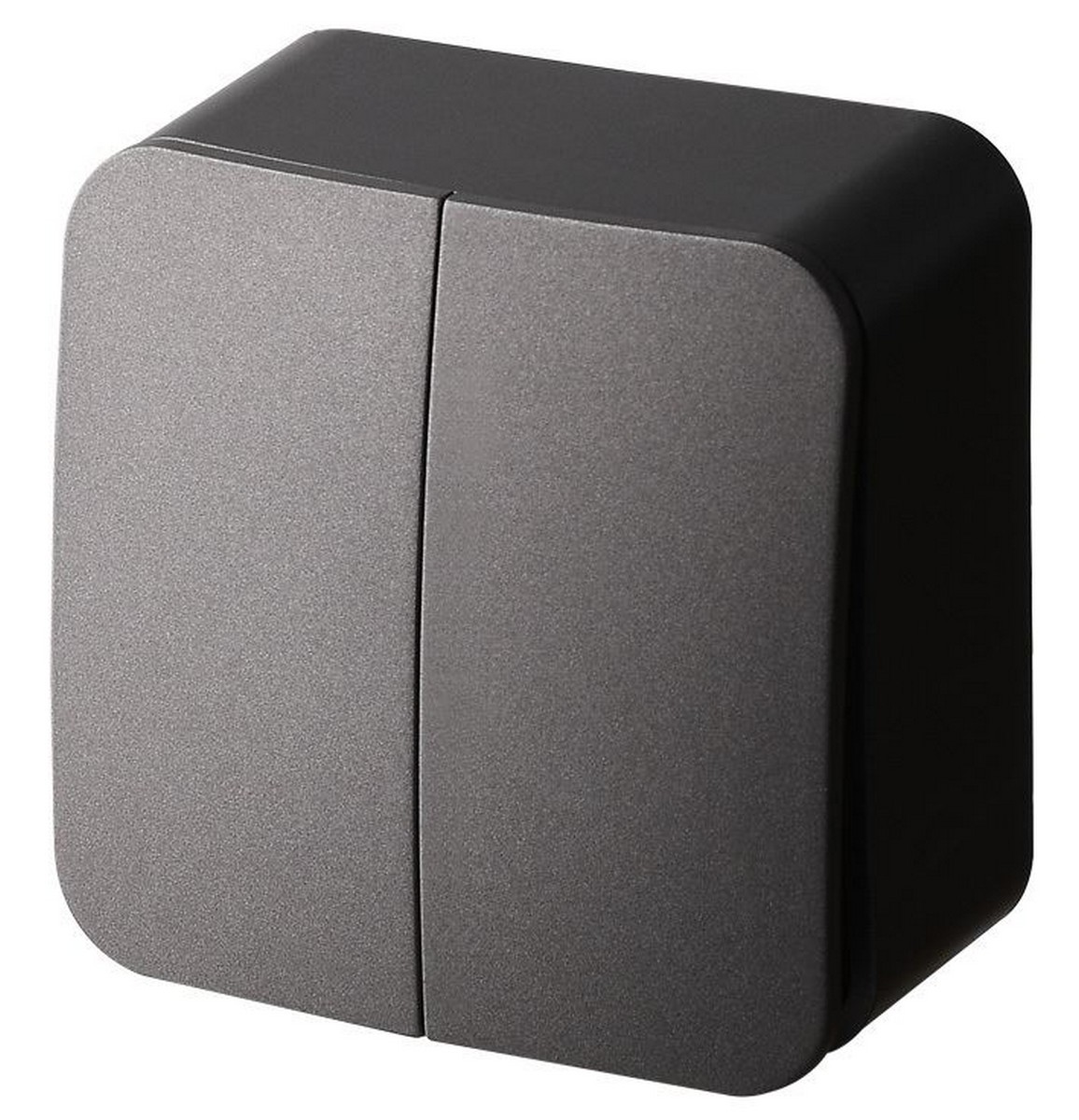 Двухклавишный выключатель, накладного монтажа 10 AX/250 В~ с винтовыми клеммами для жестких проводов сечением до 2,5 мм2