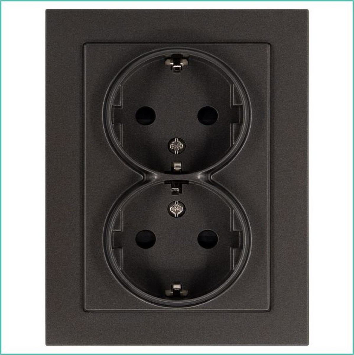 Двойная розетка SCHUKO© с винтовым зажимом для кабеля до 2,5мм², с защитными шторками. Для установки в одну монтажную коробку.
