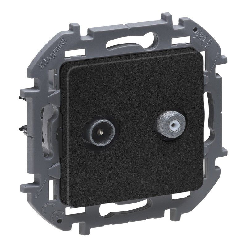Розетка телевизионная Legrand Inspiria для скрытого монтажа, для схемы "звезда", 1 дБ 4-2400 МГц, поддержка обратного питания для активных антенн до 500мА, цвет "Антрацит".