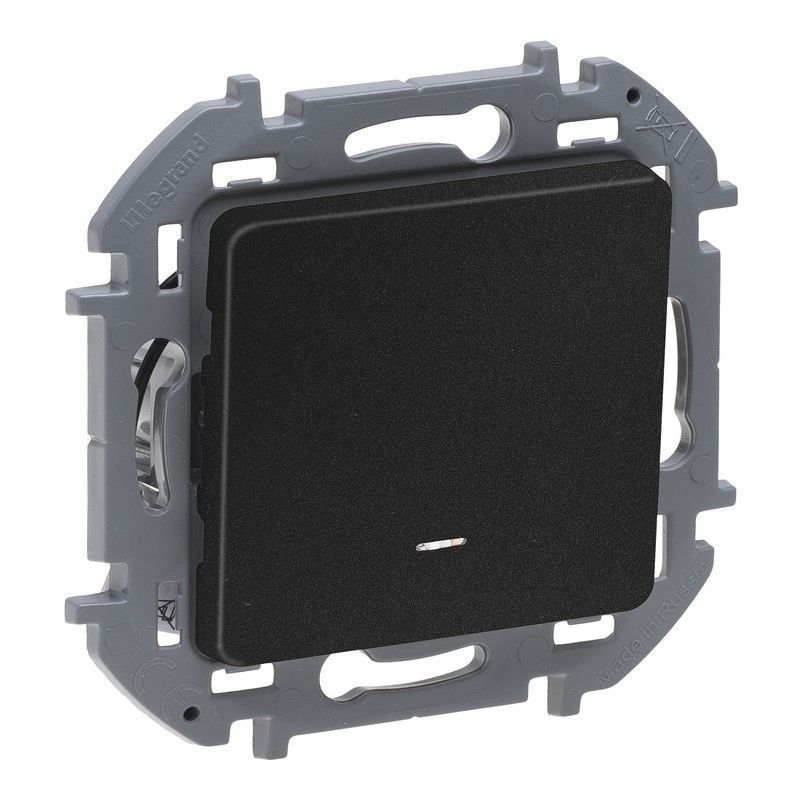 Выключатель одноклавишный с подсветкой/индикацией Legrand Inspiria для скрытого монтажа, цвет "Антрацит", номинальный ток 10 А, напряжение ~250 В.