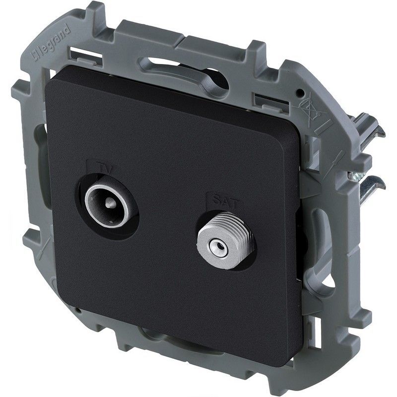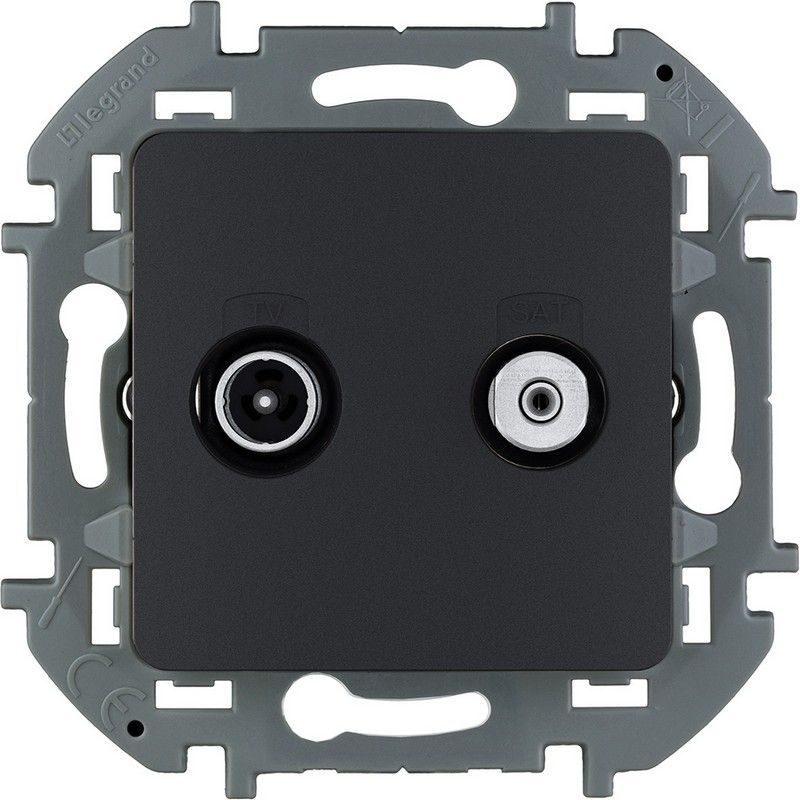 Розетка телевизионная-спутниковая Legrand Inspiria для скрытого монтажа, для схемы "звезда", 1.5 дБ 4-2400 МГц / 2 дБ 4-2400 МГц, поддержка обратного питания для активных антенн до 500мА, цвет "Антрацит"