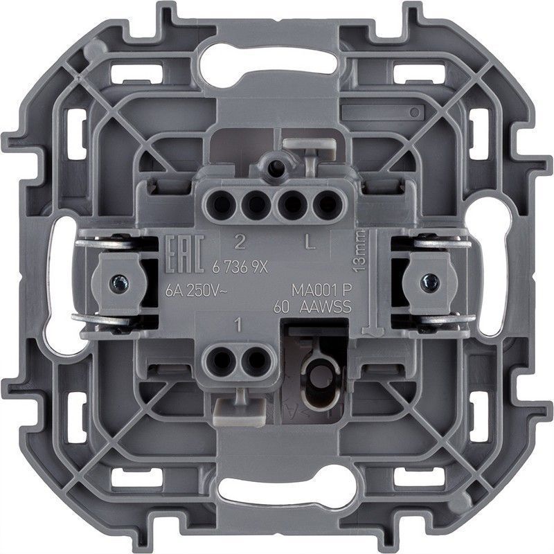 Устройство предназначено для скрытого монтажа и невеликой глубины 20 мм, что облегчает установку в различных монтажных коробках. Клавиша изготовлена из глянцевого пластика АБС, устойчивого к выгоранию, повреждениям и загрязнениям. Все токоведущие элементы защищены от случайного контакта, а безвинтовые зажимы обеспечивают быстрое и надежное подключение проводов без необходимости обслуживания.