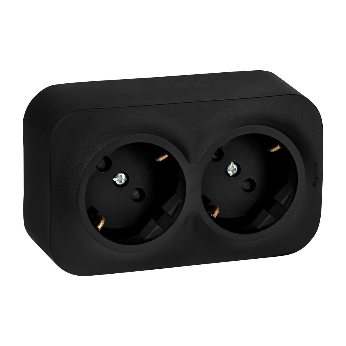 Розеточный блок Legrand Quteo, артикул 782475, выполнен в стильном чёрном матовом цвете и оснащён двойной розеткой с заземлением и защитными шторками. Этот блок обеспечивает безопасность благодаря заземлению и шторкам, предотвращающим попадание пыли и посторонних предметов. Идеально подходит для современных интерьеров, предлагая надёжное и безопасное подключение. Производитель: Legrand.