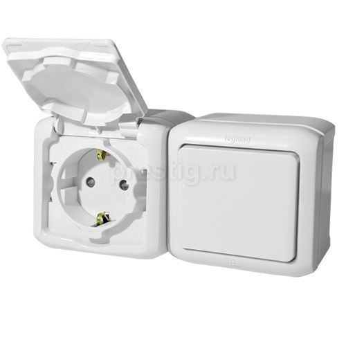 Выключатель+розетка Legrand Quteo с/заземлением IP44 белый 782318 по цене 265 руб. с фотографией и техническими характеристиками. Для покупки товара нажмите кнопку "Купить" и перейдите в корзину или позвоните по телефону 8 (495) 585 32 60 или 8 (800) 222 23 53.