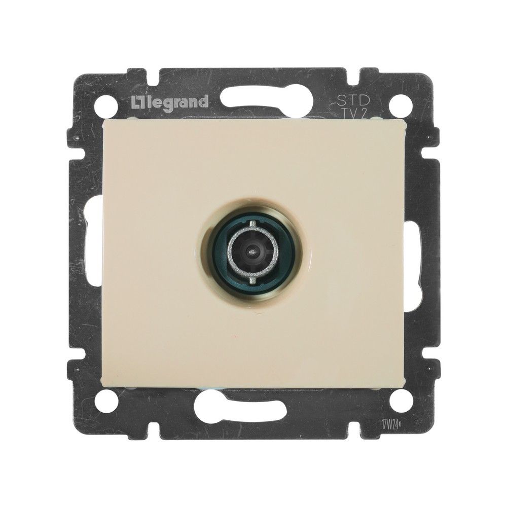 Розетка TV Legrand Valena кремового цвета предназначена для подключения телевизионных антенн. Отличается элегантным дизайном и низким уровнем затухания сигнала в 1,5 дБ, что обеспечивает качественное изображение. Идеально подходит для интерьеров в классическом стиле.