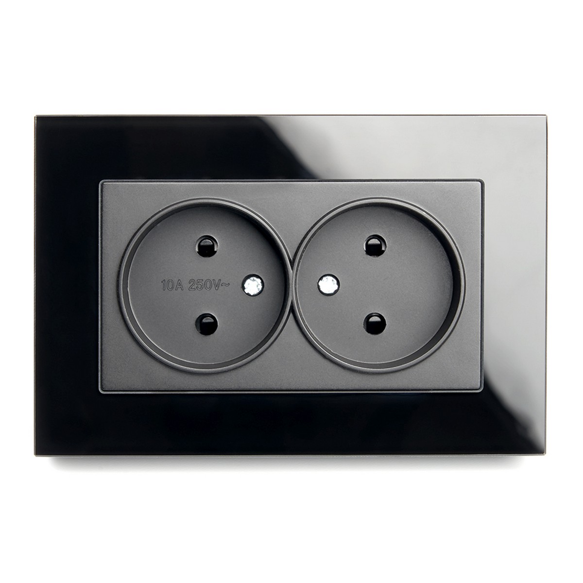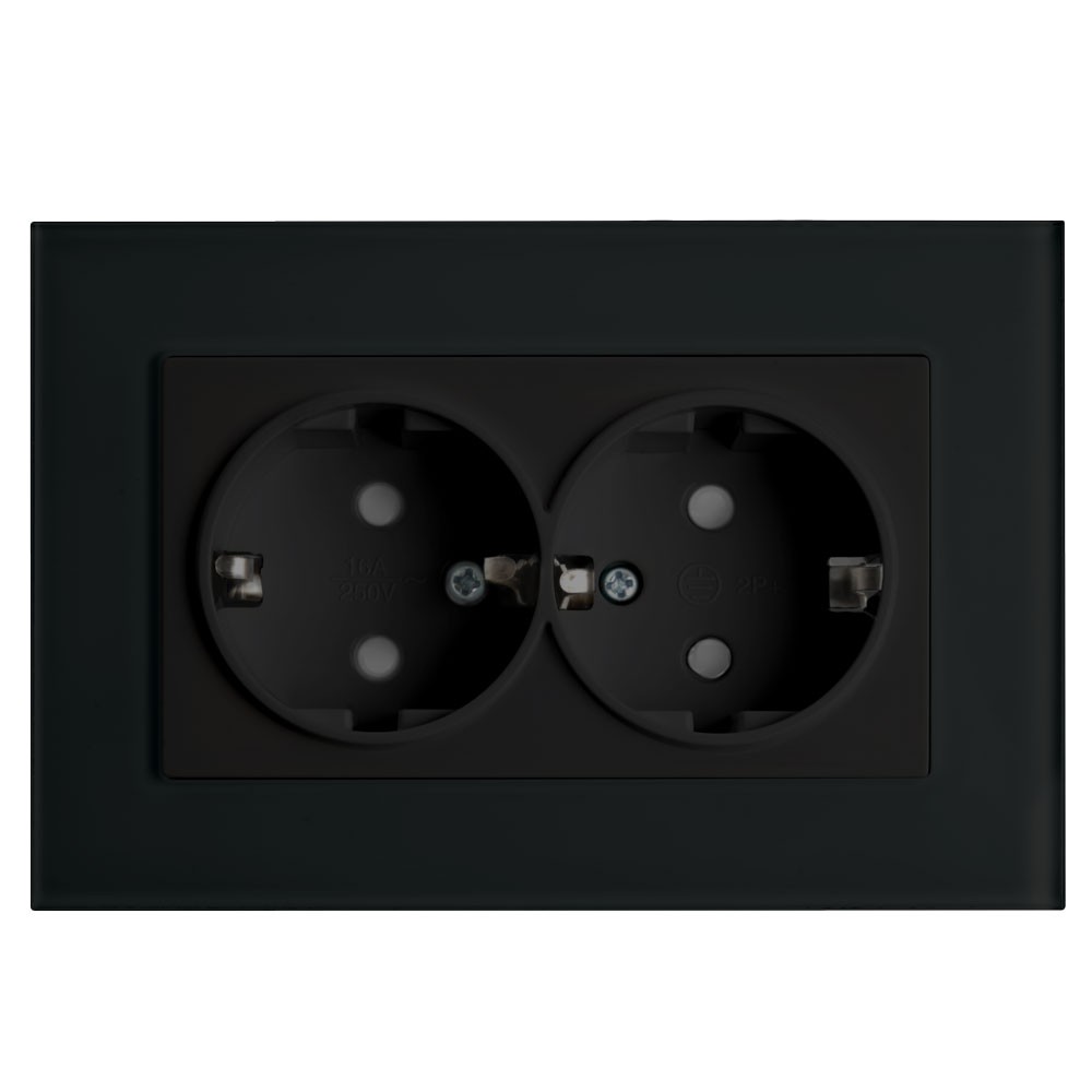Розетка STEKKER GLS10-7013-05 на 2 гнездо, без заземления. Материал: Закаленное стекло, ABS пластик, полипропилен, латунь, цвет черный, размер 123*84*45мм. Номинальное напряжение 250, номинальный ток 10А, диапазон рабочих температур 0..+35°C, IP20