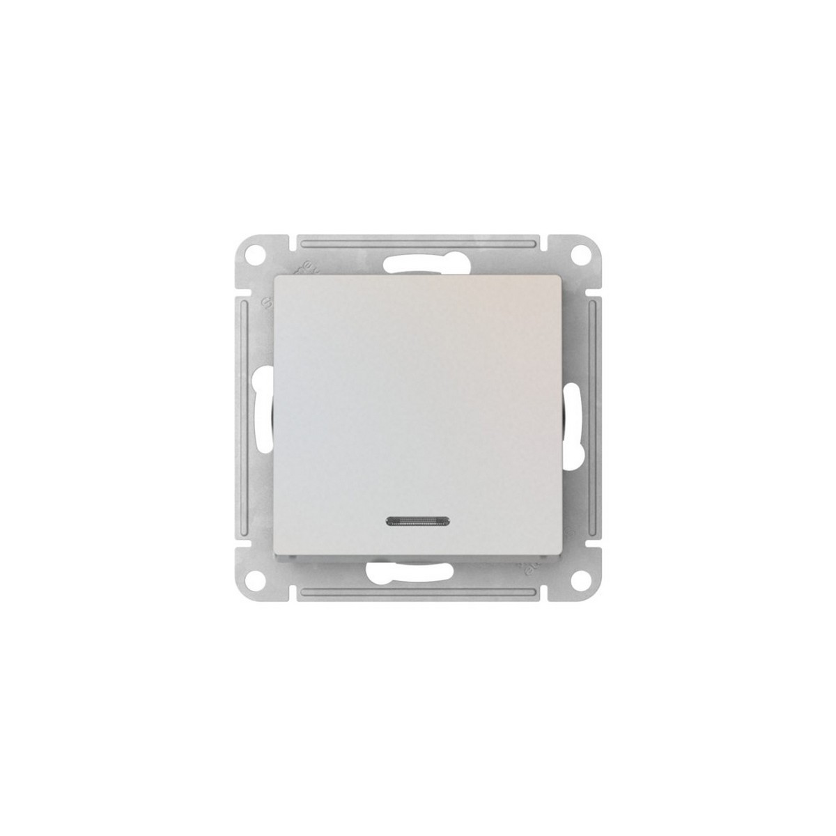 Механизм с быстрозажимными клеммами Systeme Electric (ранее Schneider Electric) серии AtlasDesign в цвете жемчуг 1-клавишного переключателя с подсветкой подходит для сетей 250 В, на ток 10 А. С помощью новых быстрозажимных клемм монтаж розеток и выключателей стал намного быстрее. Теперь подключение не требует использования отвертки.