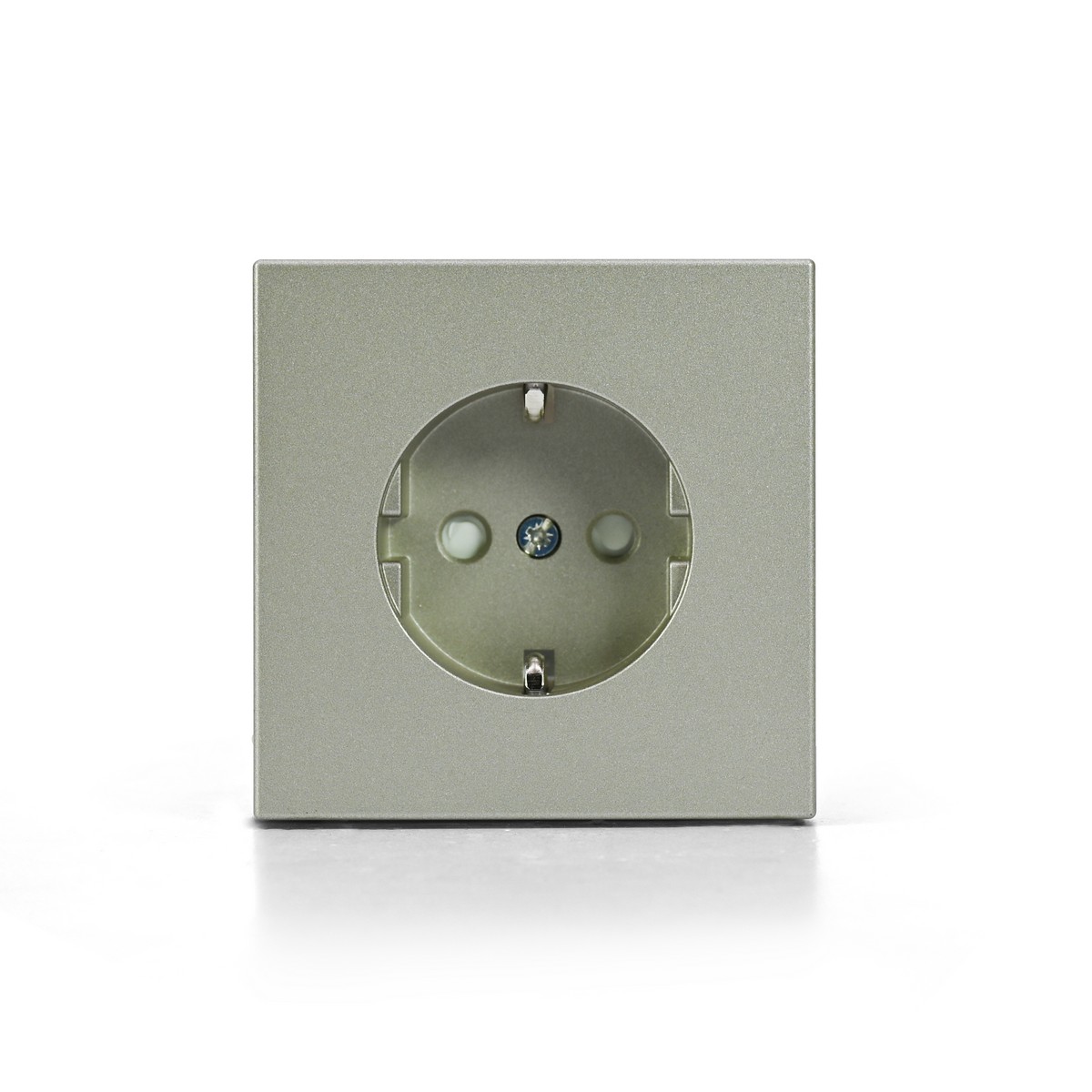 Механизм с быстрозажимными клеммами Systeme Electric серии ArtGallery в цвете шампань розетки одинарной с заземлением и шторками подходит для сетей 250 В, на ток 16 А.
