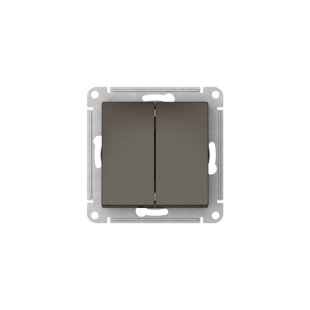 Механизм с быстрозажимными клеммами Systeme Electric (ранее Schneider Electric) серии AtlasDesign в цвете мокко 2-клавишного переключателя подходит для сетей 250 В, на ток 10 А. С помощью новых быстрозажимных клемм монтаж розеток и выключателей стал намного быстрее. Теперь подключение не требует использования отвертки.