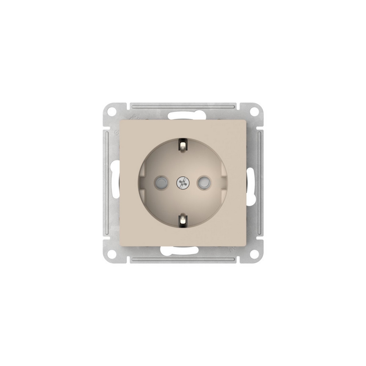 Механизм с быстрозажимными клеммами Systeme Electric (ранее Schneider Electric) серии AtlasDesign в цвете песочный розетки одинарной с заземлением и со штороками подходит для сетей 250 В, на ток 16 А. С помощью новых быстрозажимных клемм монтаж розеток и выключателей стал намного быстрее. Теперь подключение не требует использования отвертки.