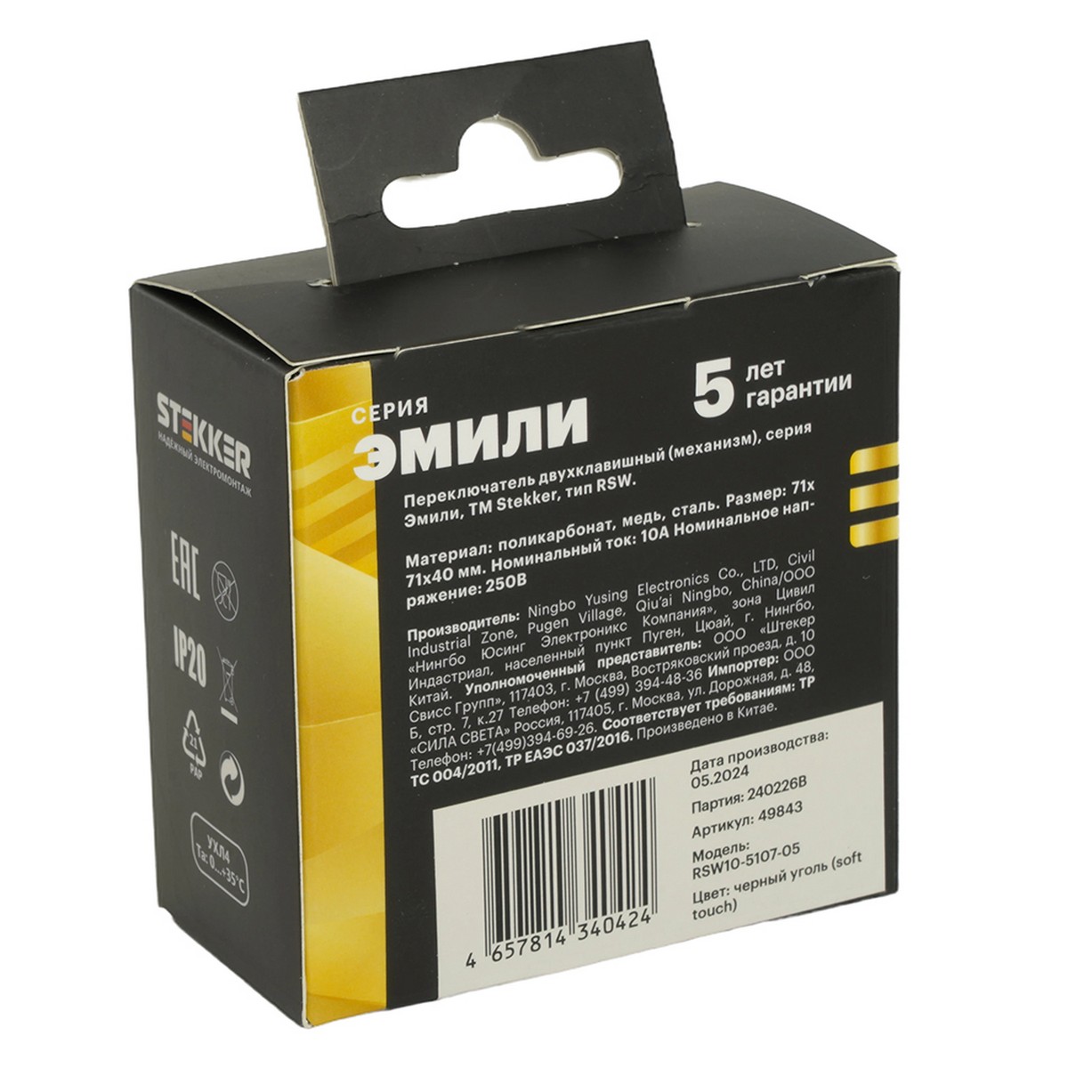 Переключатель 2-клавишный STEKKER Эмили RSW10-5107-05 черный уголь soft touch 49843 по цене 290 руб. с фотографией и техническими характеристиками. Для покупки товара нажмите кнопку "Купить" и перейдите в корзину или позвоните по телефону 8 (495) 585 32 60 или 8 (800) 222 23 53.