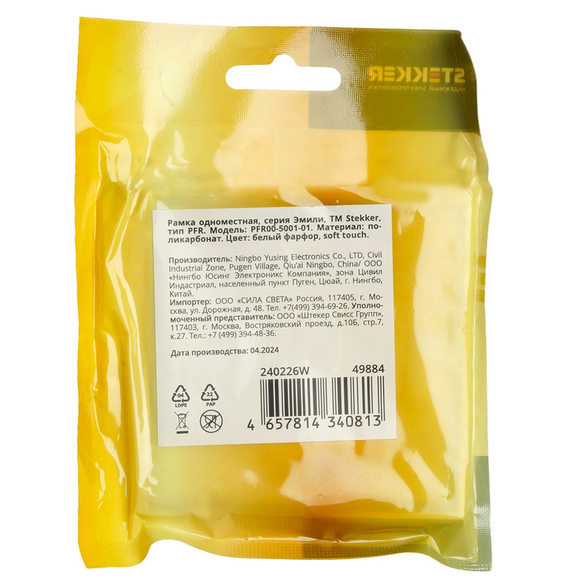 Рамка STEKKER PFR00-5001-01 1-ая Эмили в белом фарфоре с эффектом soft touch — это идеальное решение для современного интерьера. Изящные линии и стильный дизайн делают её не только функциональным, но и эстетически привлекательным элементом. Изготовленная из качественного поликарбоната, рамка обладает высокой прочностью и устойчивостью к высоким температурам, не поддерживая горение при температуре выше 850 °С. Токоведущая часть розеток из оловяннофосфорной бронзы и полиамидный внутренний блок обеспечивают надежную работу и долговечность. Размеры рамки составляют 82x82x9,4 мм, что позволяет элегантно вписаться в любые интерьерные решения. Серия Эмили от производителя STEKKER предлагает широкий выбор электроустановочных изделий, обеспечивая высокий уровень качества и надежности.