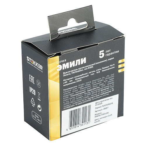 Выключатель 1-клавишный STEKKER Эмили RSW10-5103-09 в антрацитовом цвете с мягкой текстурой — это стильное и функциональное решение для вашего интерьера. Модель сочетает в себе современный дизайн и высокую практичность, что делает её идеальным выбором для любых помещений. Преимущества данного выключателя включают простоту установки и эксплуатации, а также долговечность материалов, что гарантирует надежную работу на протяжении многих лет. Мягкое покрытие не только приятно на ощупь, но и предотвращает появление отпечатков пальцев, сохраняя эстетичный вид. Эта модель отлично вписывается в различные стили интерьеров, от классического до минималистичного, благодаря нейтральному антрацитовому оттенку. Выключатель STEKKER Эмили — это не просто элемент управления освещением, а стильный акцент, который подчеркнет ваш вкус и внимание к деталям.