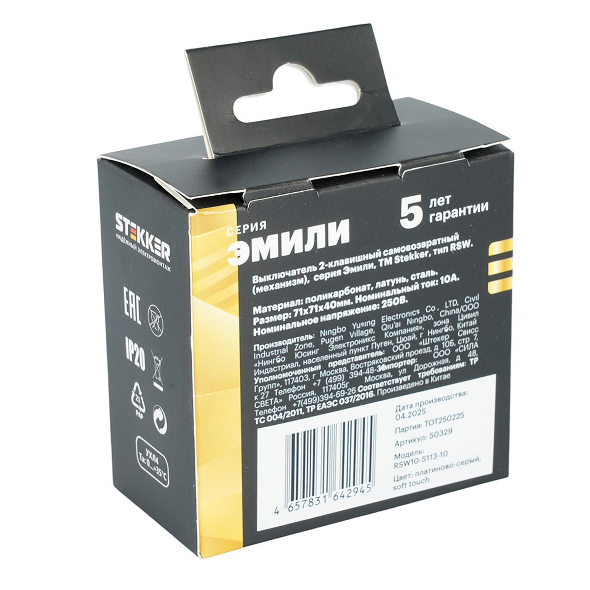 Выключатели двухклавишный STEKKER RSW10-5113-10, серия Эмили тип установки - скрытый, размер изделия 71*71*40мм., цвет платиново-серый, soft touch, материал изделия поликарбонат, латунь, сталь. Номинальное напряжение 250 , номинальный ток 10А, 20