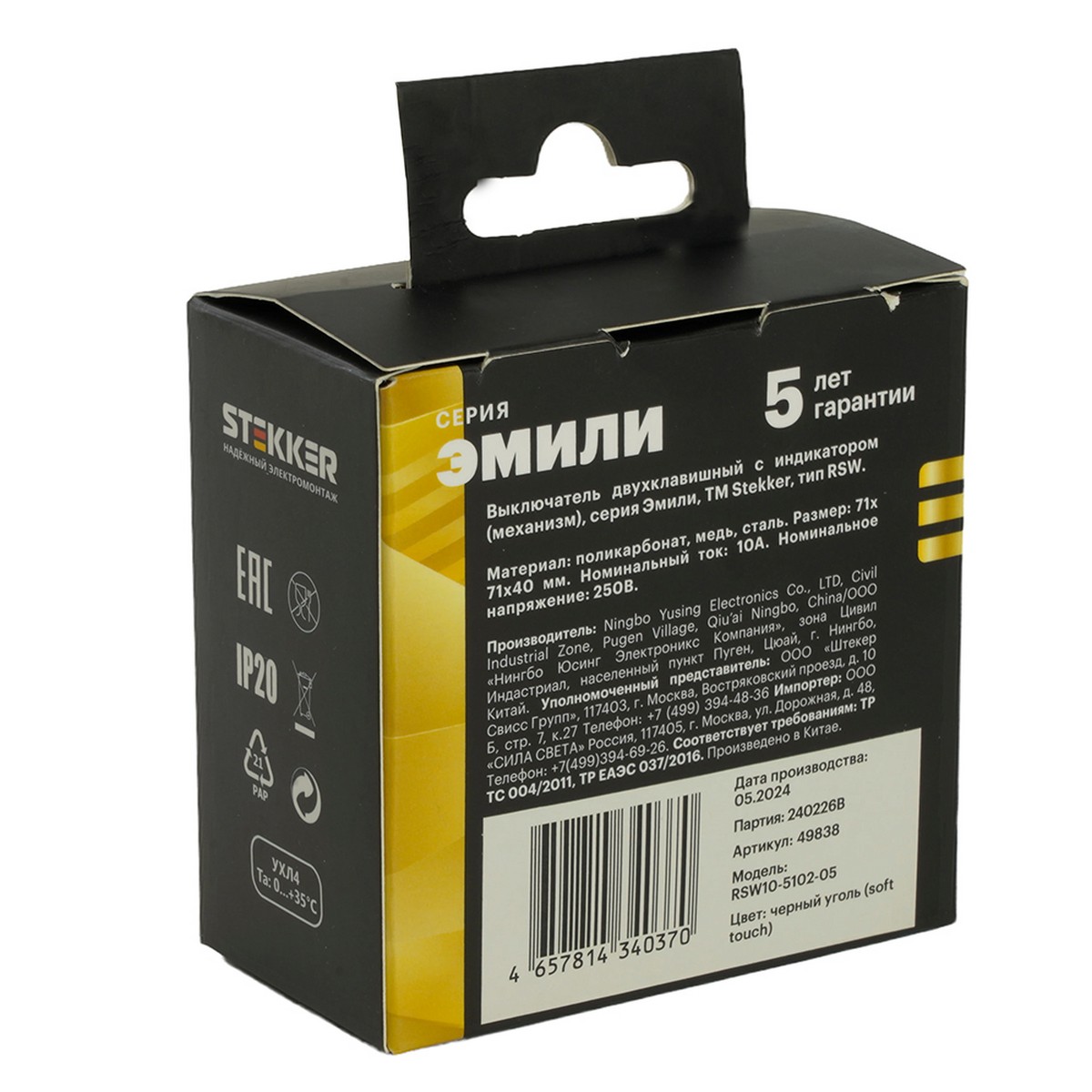 Представляем выключатель 2-клавишный с индикатором STEKKER Эмили RSW10-5102-05 в цвете черный уголь. Эта модель из трендовой серии Эмили объединяет стильный дизайн и высокую функциональность. С его элегантными линиями вы сможете легко интегрировать изделие в любой интерьер, подчеркивая его утонченный вкус. Выключатель предназначен для скрытой установки и имеет компактные размеры 71*71*40 мм. Изготовленный из устойчивого к высокотемпературному воздействию поликарбоната, он не поддерживает горение, что обеспечивает дополнительную безопасность. Токоведущая часть выполнена из оловяннофосфорной бронзы, а внутренний блок – из прочного полиамида 6.6, что гарантирует надежность на долгие годы. Номинальное напряжение 250 В и ток 10А делают его подходящим для большинства домашних нужд. LATEX и гальванизированный суппорт добавляют прочности и долговечности. С выключателем СОСТАВ клиента станет не только удобнее, но и стильнее.