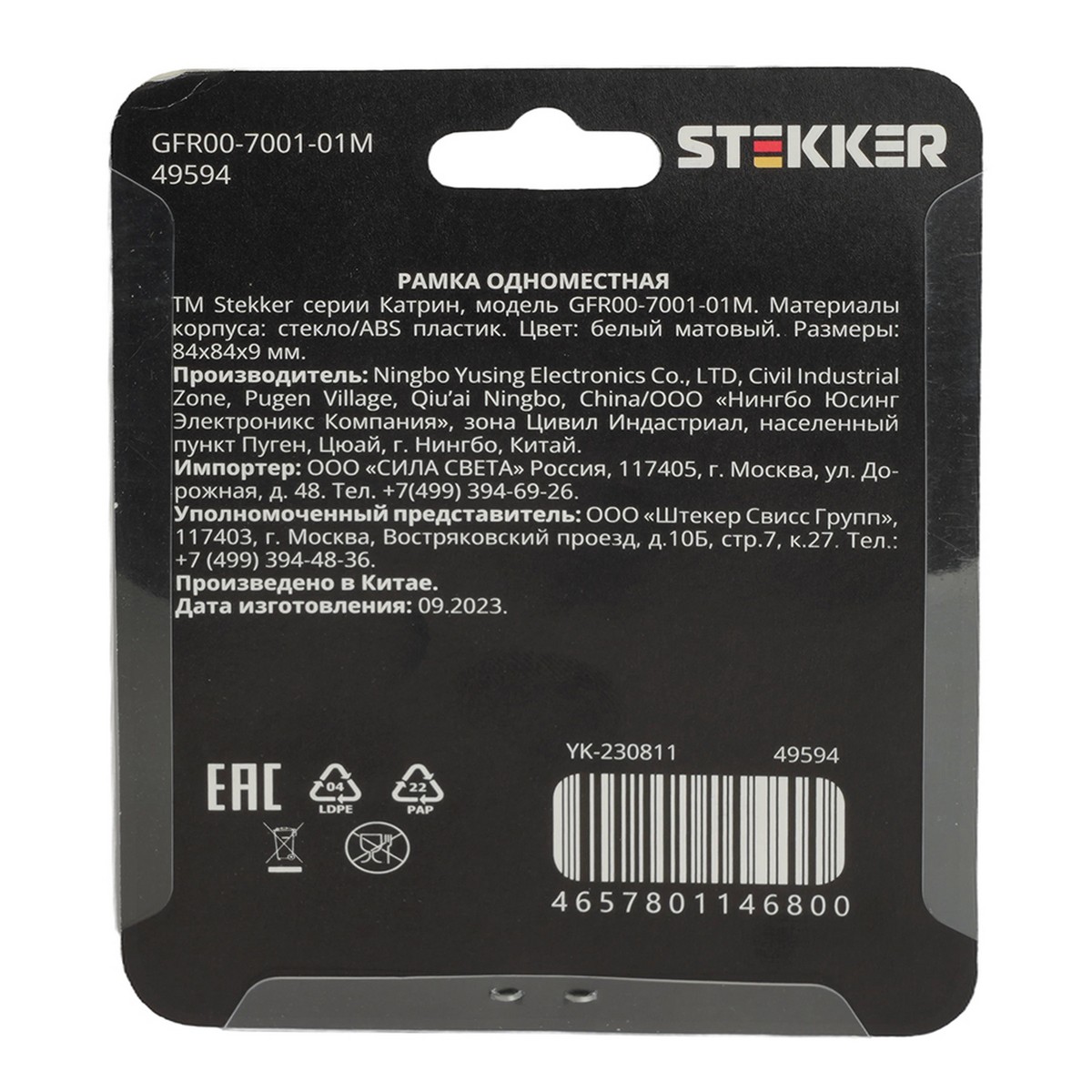 Рамка STEKKER 1-местная Катрин стекло белый матовый GFR00-7001-01М 49594 по цене 237 руб. с фотографией и техническими характеристиками. Для покупки товара нажмите кнопку "Купить" и перейдите в корзину или позвоните по телефону 8 (495) 585 32 60 или 8 (800) 222 23 53.