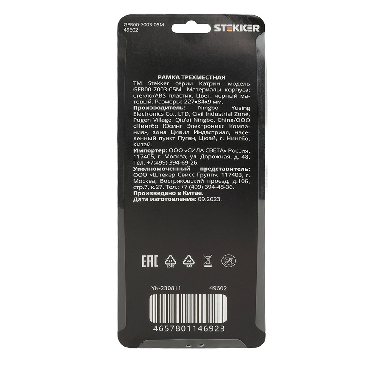 Рамка STEKKER 3-местная Катрин стекло черный матовый GFR00-7003-05М 49602 по цене 752 руб. с фотографией и техническими характеристиками. Для покупки товара нажмите кнопку "Купить" и перейдите в корзину или позвоните по телефону 8 (495) 585 32 60 или 8 (800) 222 23 53.