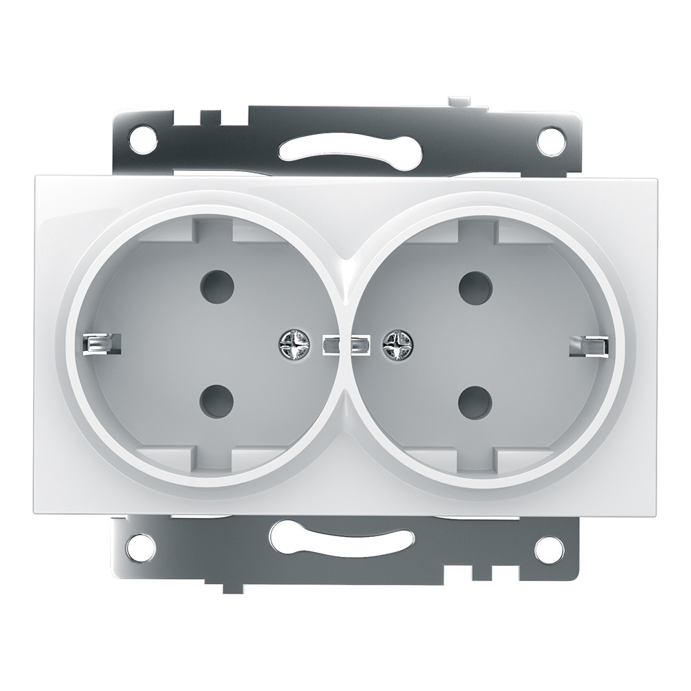 Розетка 2-местная с заземлением STEKKER GLS16-7114-01, 250V, 16A, серия Катрин. Имеет защитные шторки для безопасности, подходит для установки в интерьере благодаря белому цвету. Надежное решение для подключения электрооборудования.