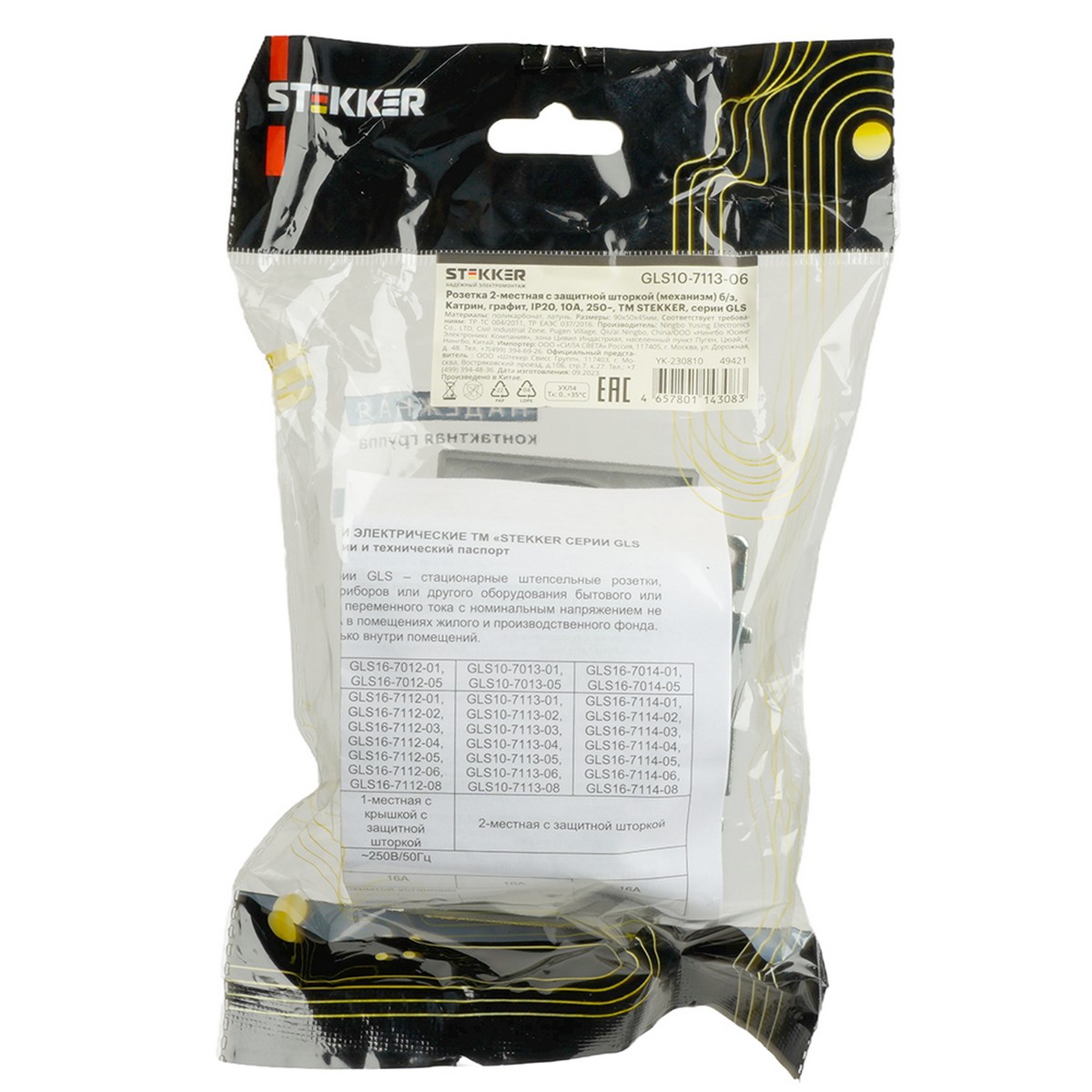 Розетка 2-местная б/з STEKKER GLS10-7113-06 250V 10А с защ. шторкой Катрин графит 49421 по цене 196 руб. с фотографией и техническими характеристиками. Для покупки товара нажмите кнопку "Купить" и перейдите в корзину или позвоните по телефону 8 (495) 585 32 60 или 8 (800) 222 23 53.